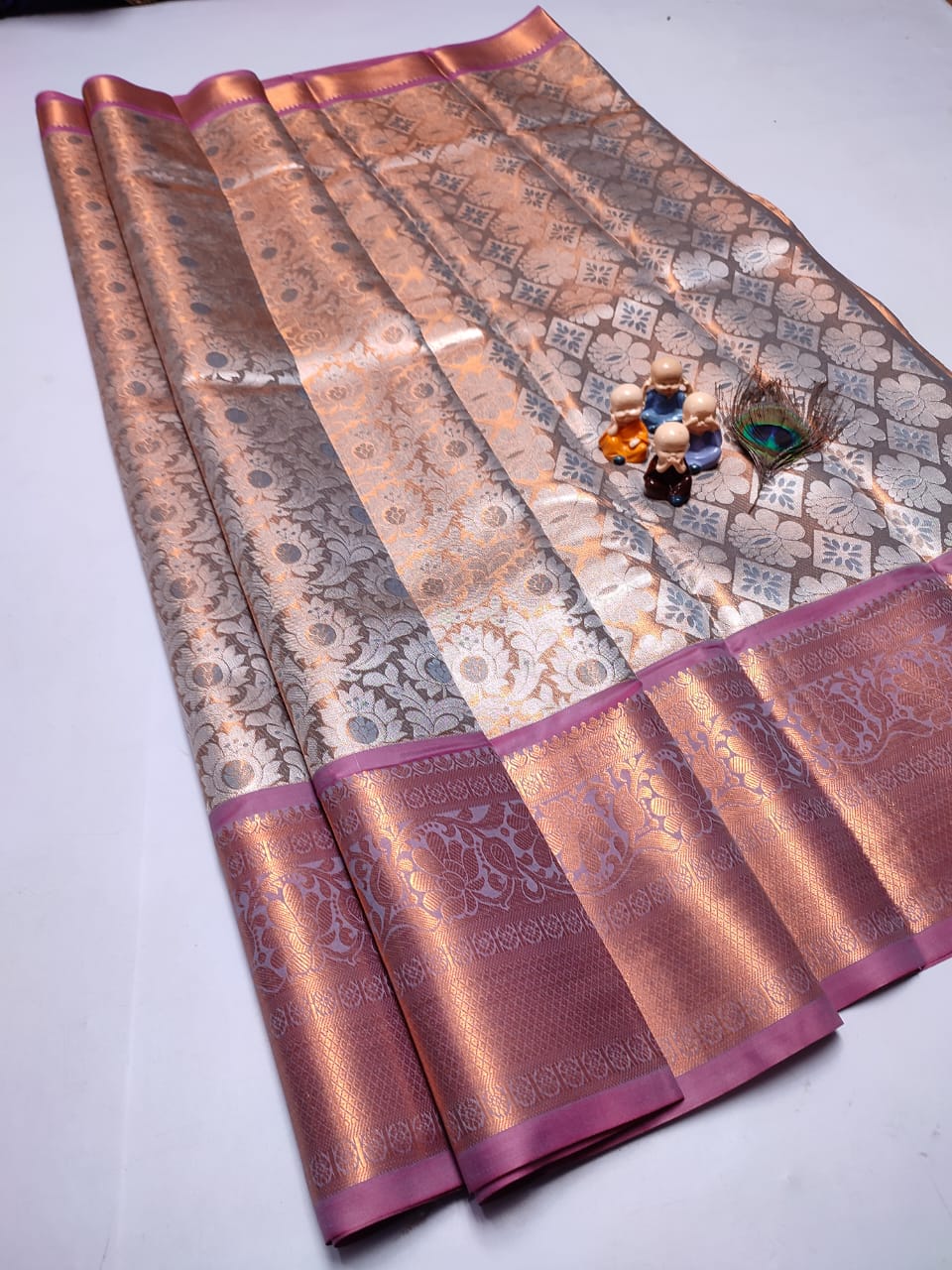 GRAND WEDDING TISSUE SILK SAREE, Exclusive Kanchipuram silk sarees, zari double weave brocade Emboss, Elegant jari work, rich pallu, Attractive Contrast blouse.